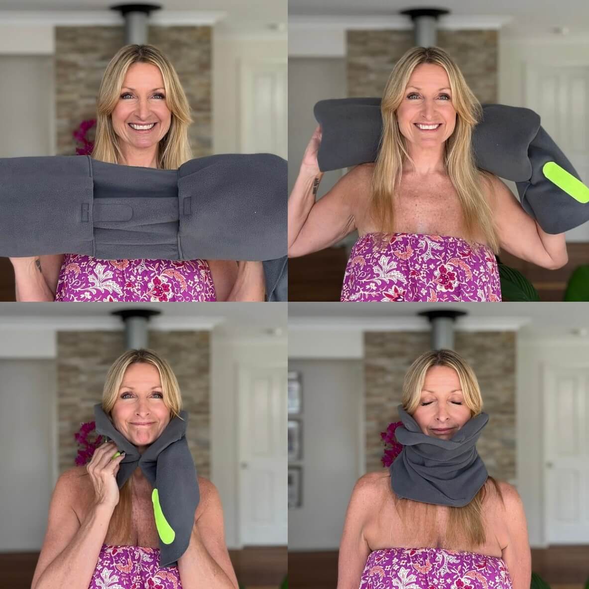 3. Wrap the AeroEaze™ Pillow around your necklike a scarf and tighten for support.