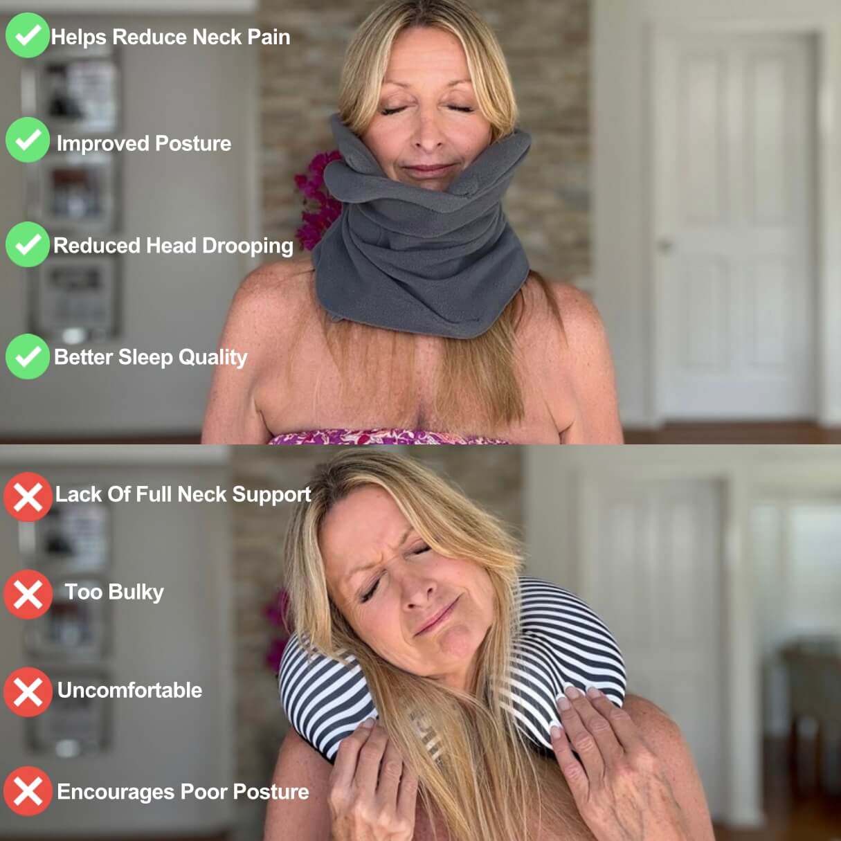 The upgraded AeroEaze Travel Pillow has been scientifically proven to support the natural curve of your neck and hold the head in a better ergonomic up-right position than a traditional travel pillow. This effectively reduces neck strain, stiffness and head-bobbing, keeping your comfort level sky-high!